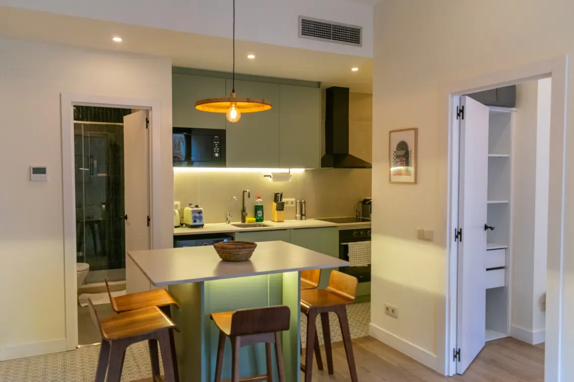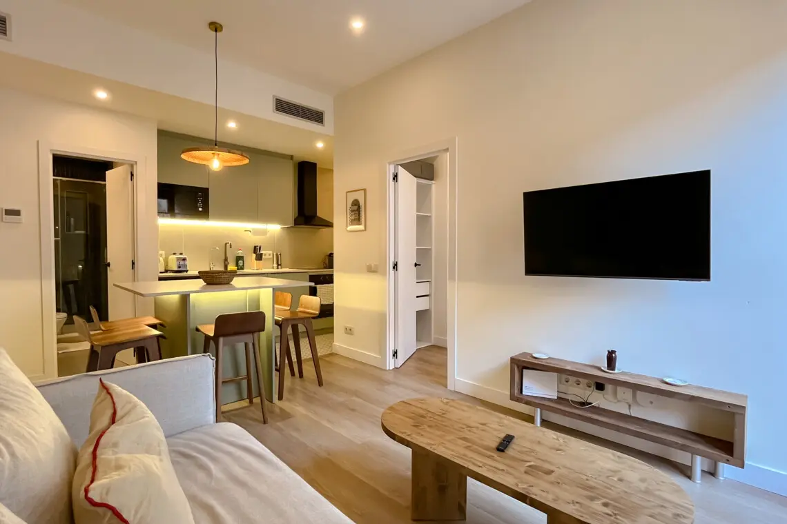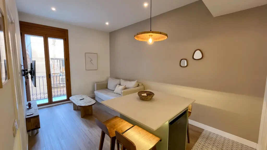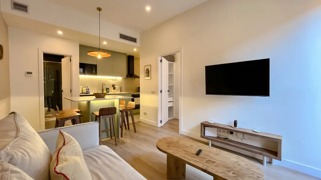 Ubicado en la calle Milà i Fontanals, este apartamento cuidadosamente diseñado combina texturas naturales, tonos suaves y confort moderno, creando un oasis de tranquilidad en uno de los barrios más vibrantes de Barcelona.