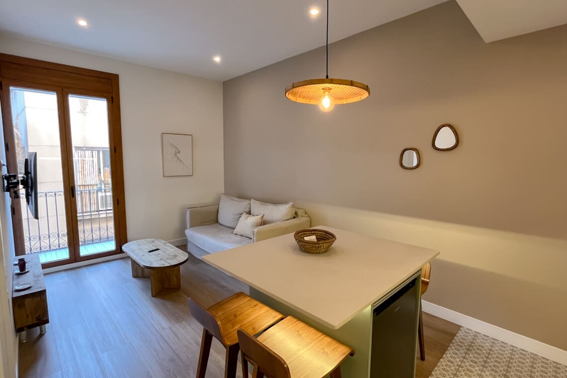 Nestled on Carrer de Milà i Fontanals, this thoughtfully designed apartment blends natural textures, soft tones, and modern comfort, creating a soothing oasis in one of Barcelona’s most vibrant neighborhoods.